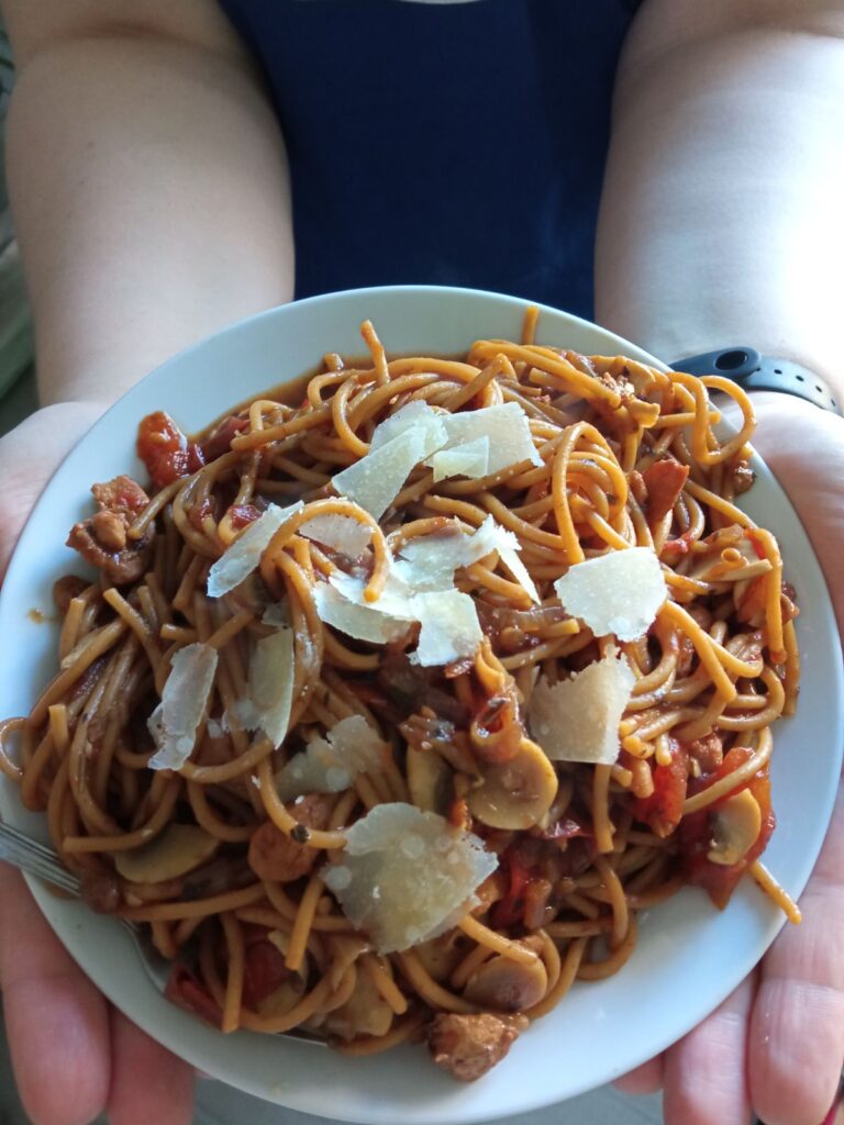 Deficyt kaloryczny z pierogami i makaronem?? Oczywiście, że tak. Nie mam nietolerancji glutenu, więc nie widzę powodów, żeby z niego rezygnować. Nie motywuję się zrobieniem sylwetki na lato, a na jesieni rekompensowanie sobie głodówki, żeby ten sam cykl powtórzyć przed następnym letnim sezonem. Lepsze bilansowanie posiłków, większa aktywność fizyczna, jedzenie pełne smaku- to brzmi naprawdę dobrze. A jeśli do tego włącza się rodzinę, powoli przenika to w codzienność, to jest dobry plan na najbliższe dni, tygodnie.